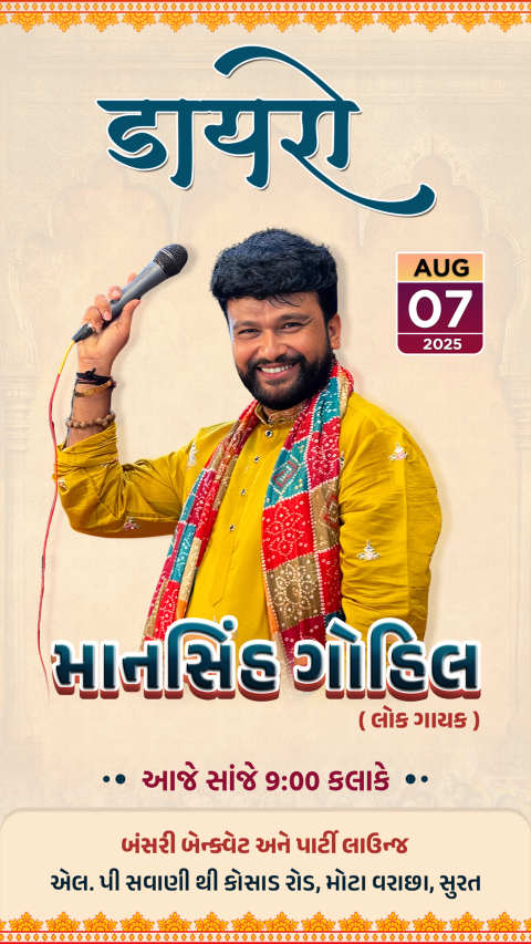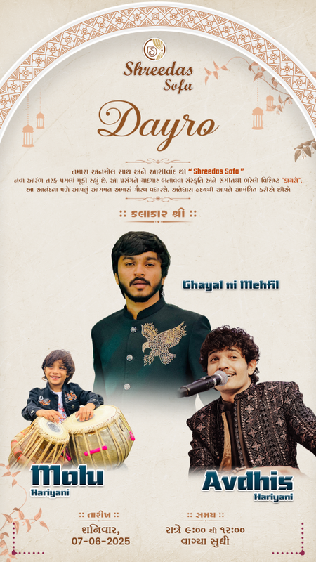 Bring the magic of Gujarati folk music to life! We create festival & cultural posts for Dayro artists, perfect for promoting live performances, private gatherings, or community events. Let your audience feel the spirit, devotion, and energy of Dayro even before they attend!