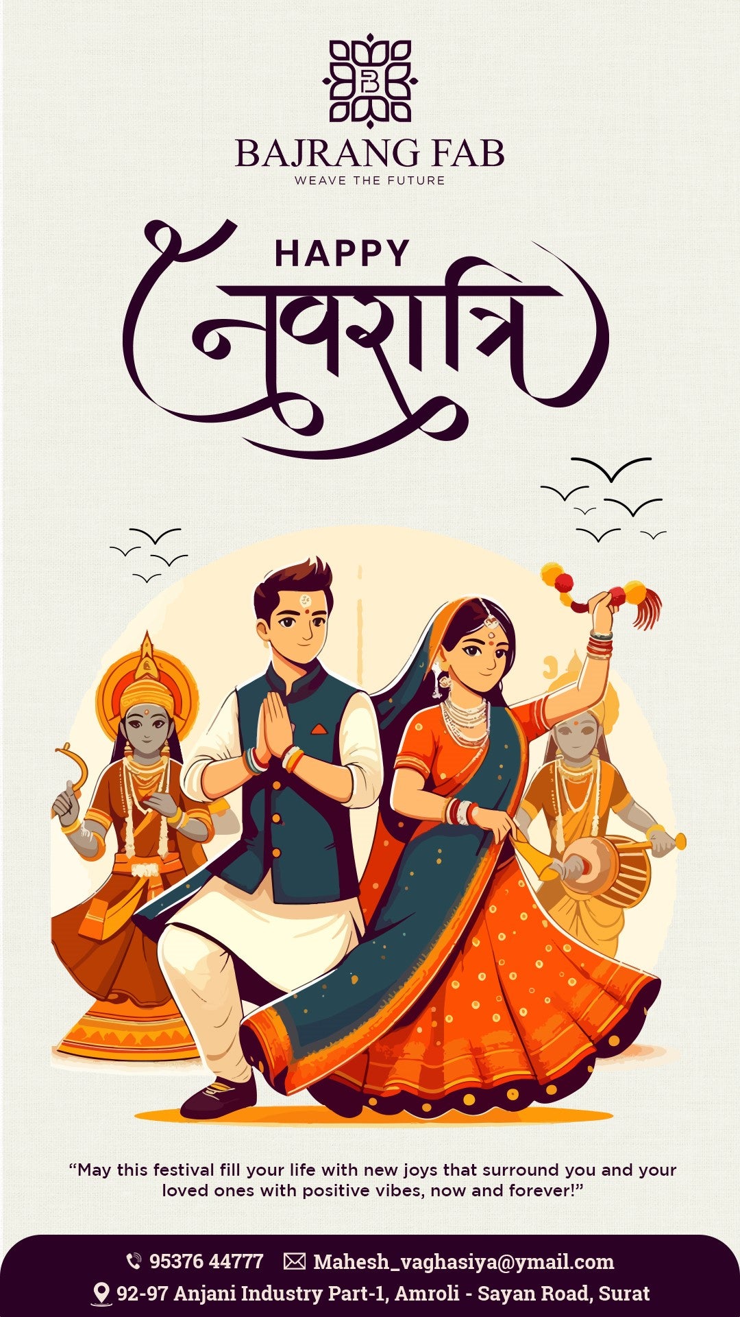 Offer-driven messaging: “Exclusive Diwali Fabrics – Limited Collection,” “Navratri Ready – Vibrant Styles Await!”