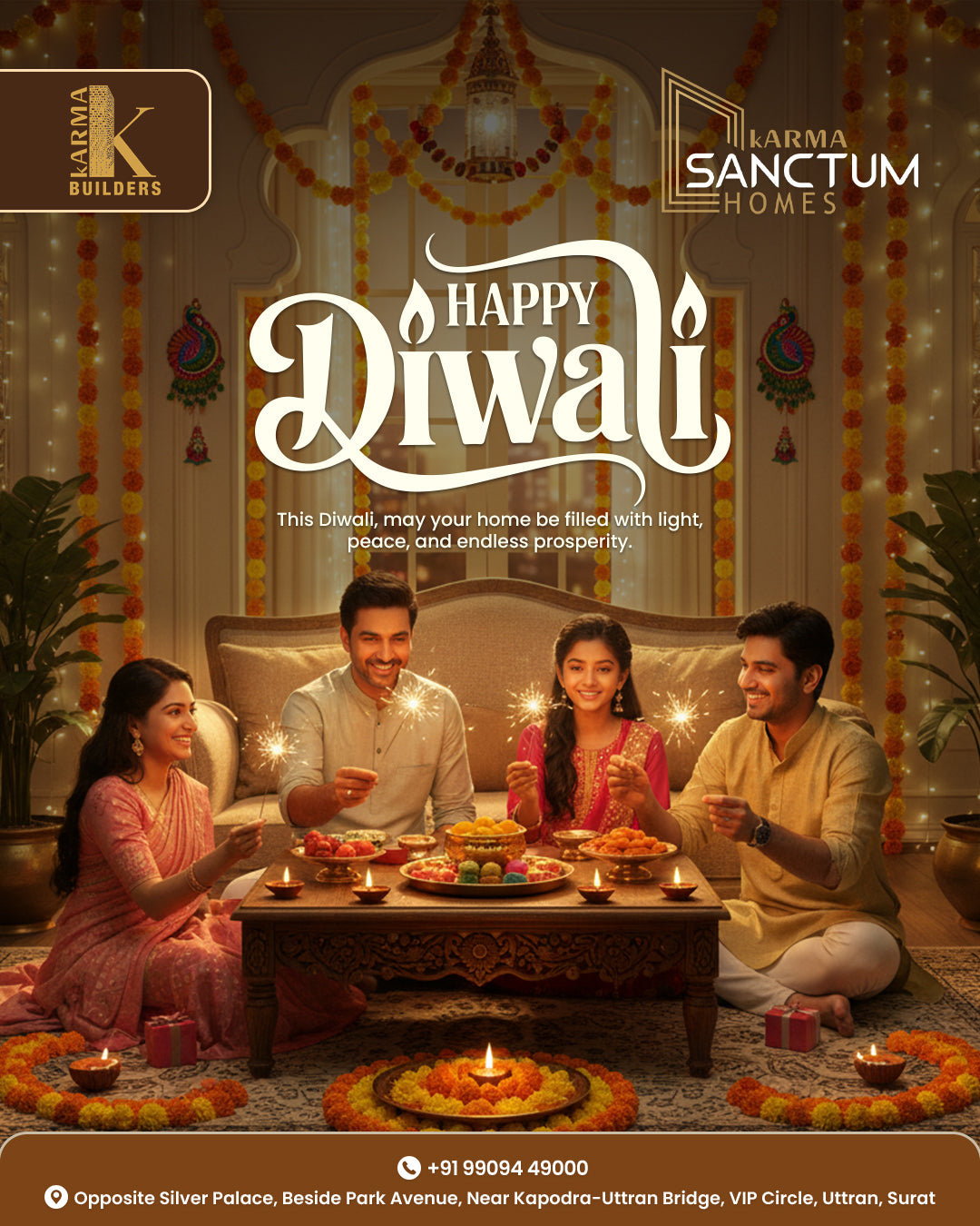 Message: "This Diwali, may your home be filled with light, peace, and endless prosperity."