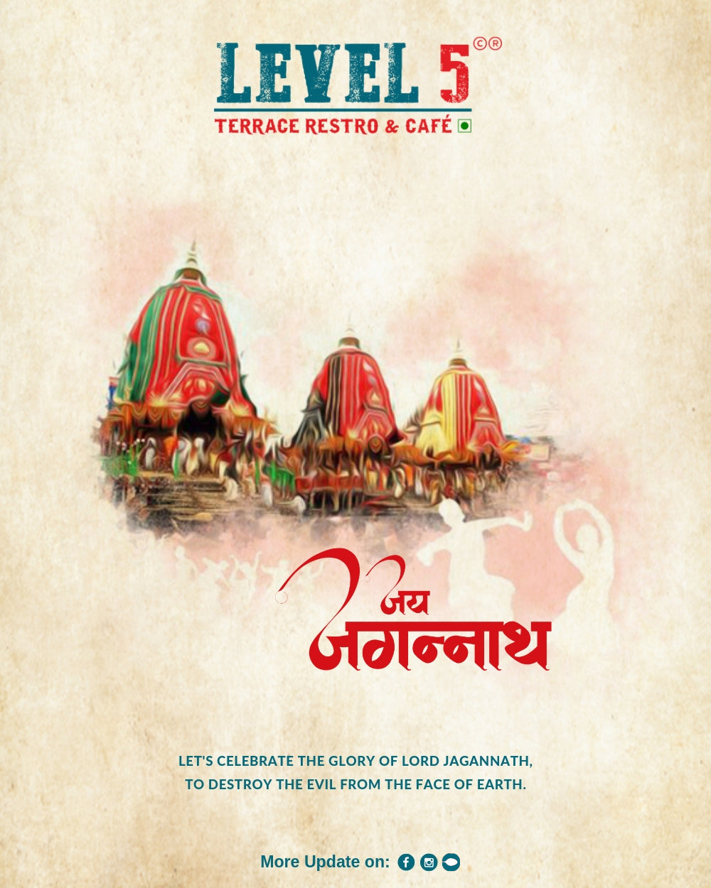 This beautiful custom post celebrates the Rath Yatra festival, honoring the glory of Lord Jagannath and his mission to destroy evil from the face of the Earth. With vibrant imagery of the famous Rath Yatra chariots, this design is perfect for promoting your event, specials, or cultural celebration. It's perfect for social media posts, event flyers, or any promotional materials.