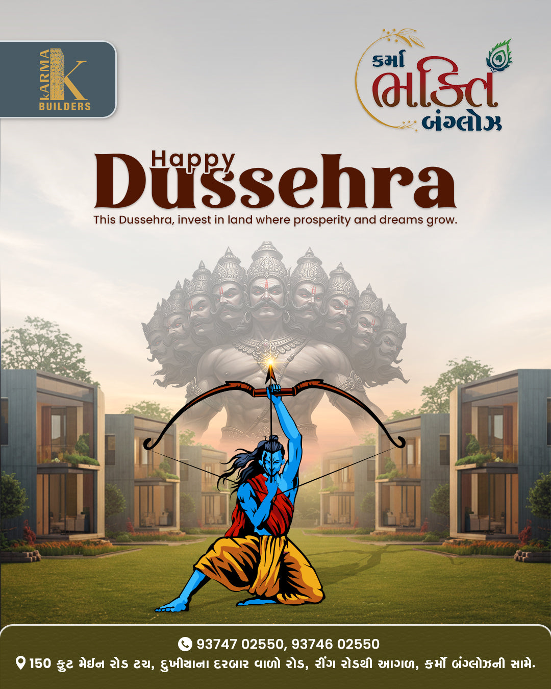Message: "This Dussehra, invest in land where prosperity and dreams grow."